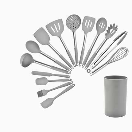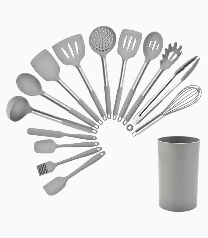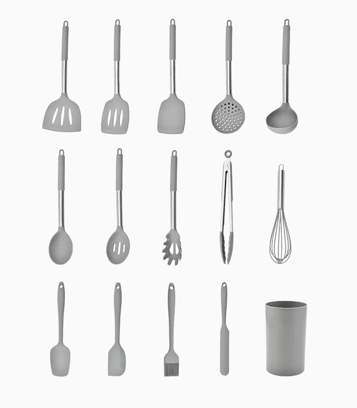 Mersa Cooking Utensil Sets Silicone Stainless Steel Spatula Gift – White, 15 Pcs