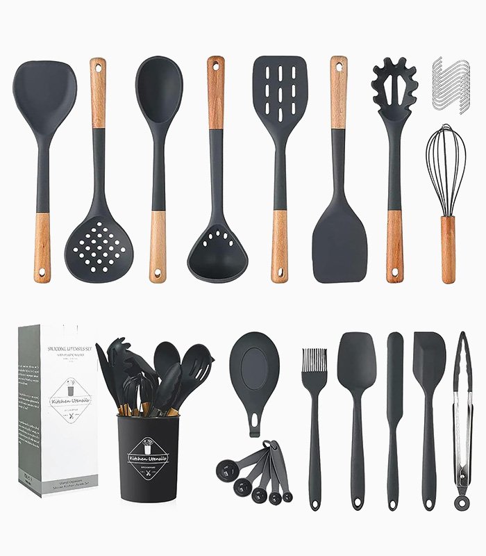 Mersa 37 Pcs Silicone Spatula Set Heat Resistant Spatula Wooden Handle Cookware