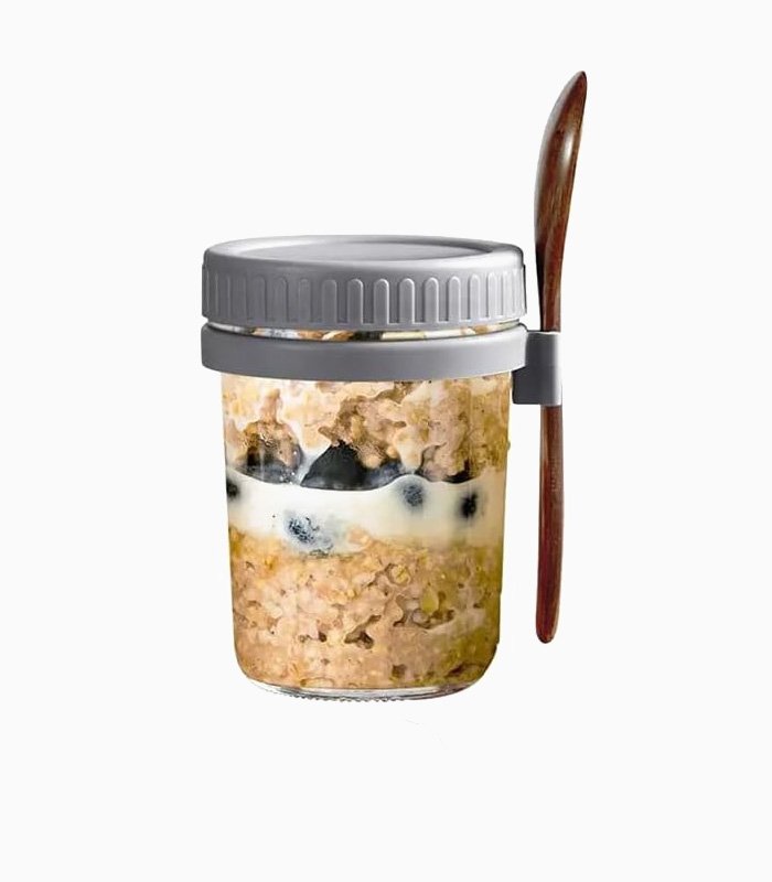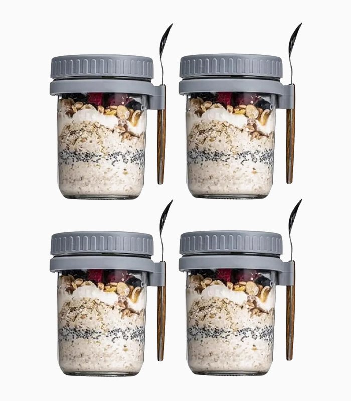 Mersa 16oz Storage Mason Jar And Canister With Spoon For Oats Salads Yoghurt Cereals, Gray, Pack of 4