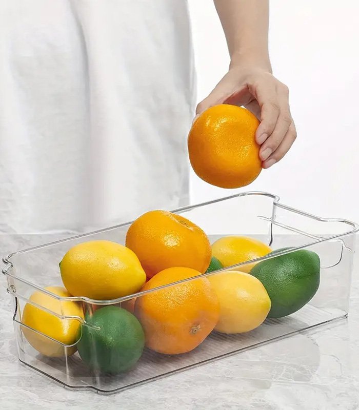 Our transparent bins and refrigerator storage containers are precision-engineered from polyethylene, a robust and BPA-free material, ensuring prolonged durability and shatter-resistant reliability. These handled bins are perfectly suited for regularly used items such as snacks and condiments, not only fostering a sense of order in your refrigerator but also streamlining your restocking process. Whether you're a fan of organization or just enjoy a well-organized fridge, these bins bring convenience to your life.