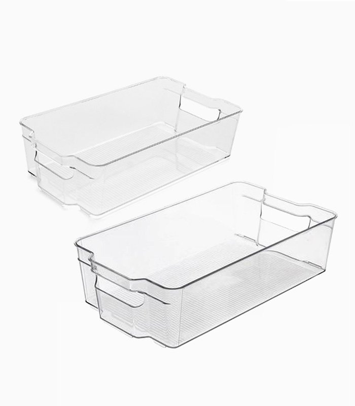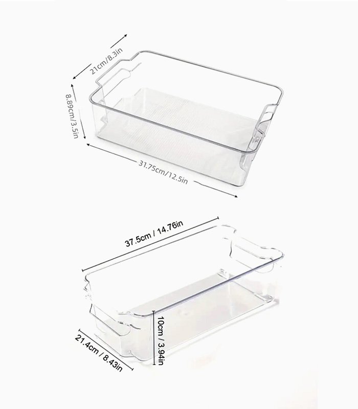 Introducing our Fridge Bins Organizer Pack of 2 in ‘Medium & Large’ size Medium 31.75 X 21 X 8.89 cm – Large 37.5 x 22 x 10 cm – the perfect solution for your refrigerator storage needs. These bins are thoughtfully designed to help you keep your fridge in order and optimize space.