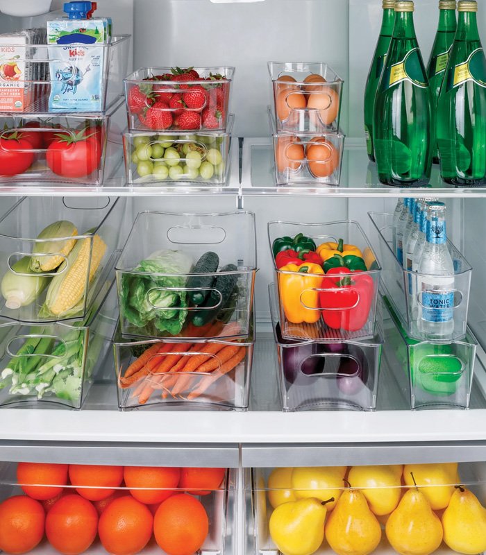Who wouldn't appreciate being able to see their food items easily? Our refrigerator baskets eliminate the need to search through the fridge for your favorite foods. Now, you can effortlessly access your preferred drink, gather snacks in one spot, quickly grab eggs, and maintain separation between fruits and vegetables.